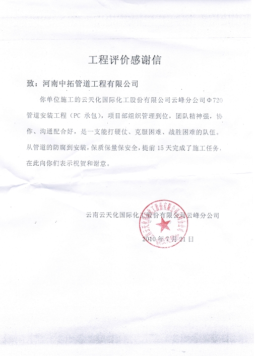 祝賀安裝分公司云南宣威管道安裝項目順利完工 (圖)