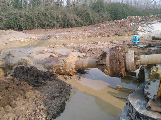 工程于2016年03月06日開(kāi)始導(dǎo)向孔鉆進(jìn),施工中難點(diǎn)較多:穿越實(shí)際地質(zhì)比地勘巖石硬度大;在入土點(diǎn)場(chǎng)地內(nèi)有兩條無(wú)標(biāo)識(shí)軍用國(guó)防光纜;為了避開(kāi)入土點(diǎn)的加油站和出土點(diǎn)的廠(chǎng)房,穿越曲線(xiàn)橫向偏移了39.4米,又增加了導(dǎo)向孔的難度。