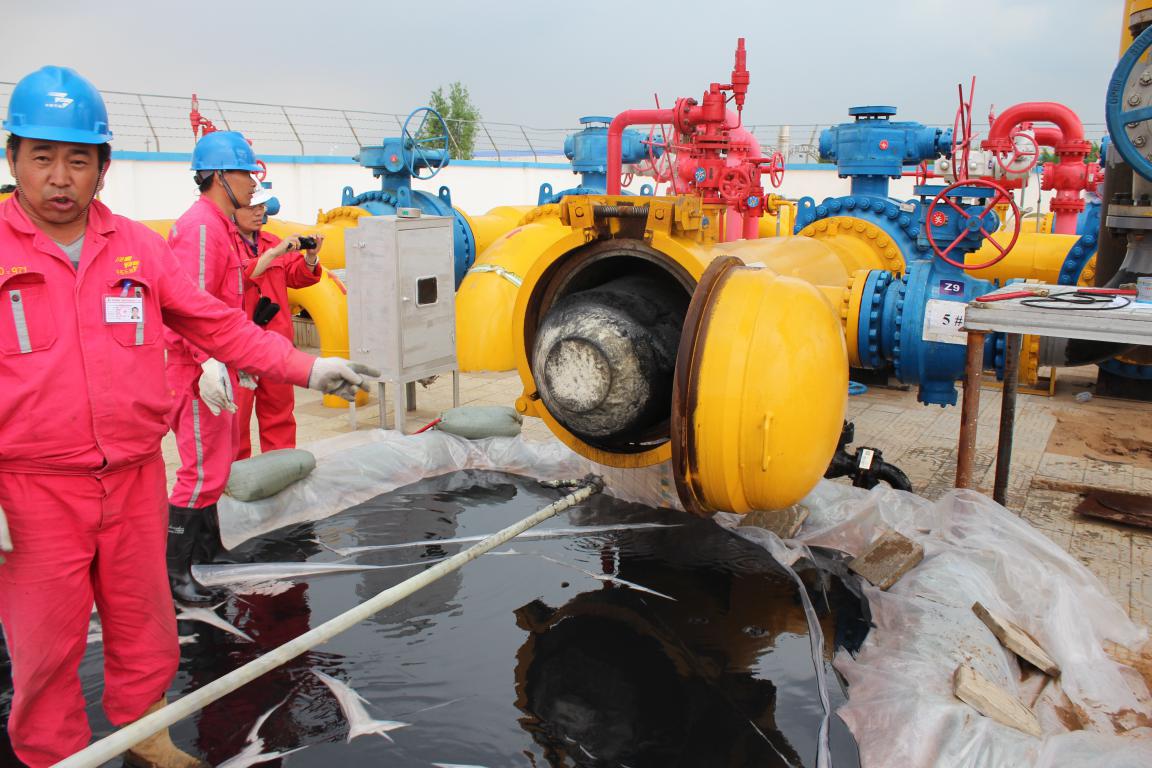 6月21日14:00塔榆首站收球成功,標(biāo)志著歷時(shí)6天的大牛地氣田輸氣干線清管作業(yè)順利竣工。