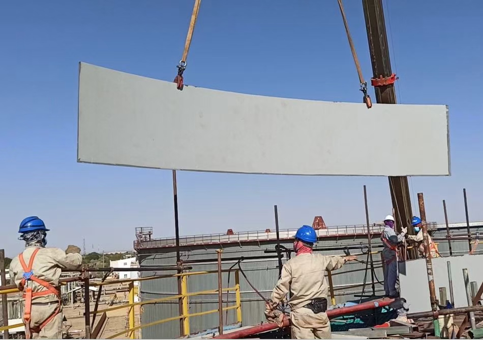 在KRC 5000方罐頂更換項目中,總公司從國內協調項目工程師第一時間進入現場,蘇丹公司錢經理帶領蘇丹KRC團隊提前做項目準備,對問題做到預知預判,經過團隊的精心合作,使蘇丹項目得以順利實施。在KRC營地經理王西勇的帶領下,目前第一個罐已經順利竣工。營地副經理郭可保更是在施工現場積極協調甲方,理順施工流程,大大加快了施工進度。