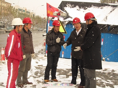 12月8日中午,天空卷起了鵝毛大雪,路上積雪足有四五厘米厚,就在今天,徐總與張總冒著嚴(yán)寒積雪以及交通不便的惡劣條件來到我們?yōu)H坊項(xiàng)目部進(jìn)行慰問和工作指導(dǎo)。