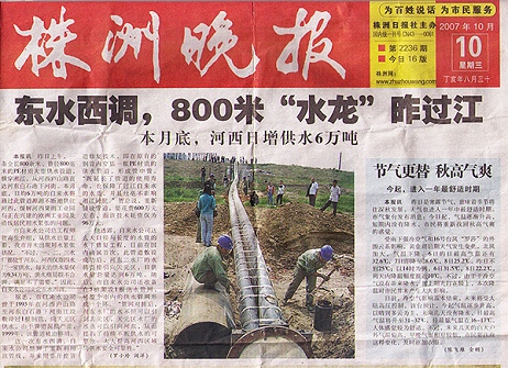 10月10日在湘江穿越管線修復項目竣工之時,《株洲晚報》頭版發布此次工程信息,并給予良好的評價!